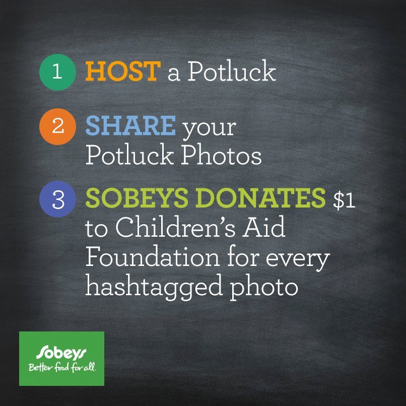 Why not make an effort this Friday to connect with a few of your friends or family members, make a simple healthy dish to share and have a fun evening in? If you do, be sure to share your photos on Facebook, Instagram and Twitter using the hashtags #FRD2014 and #Potluck Challenge (and tag @Sobeys). Each time you post with those hashtags $1 will be donated to the Children’s Aid Foundation.