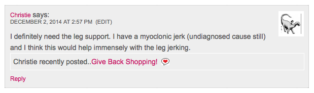 Infact, I like the product so much that I’m pretty sure I’ll be buying second leg support in the new year (for those days both legs are bothering me), and I’ve already sent them an email telling them I wished they made a full arm sleeve as I could definitely use two of those as my arms are the WORST! They are so super sweet that they are going send me one of their elbow supports to see if that helps with my arm pain – I’ll keep you posted on that!