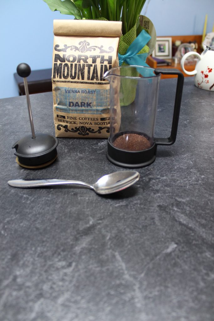 I like to use my french press to make my cold brew, but you can also make it using a large glass or pitcher. Starting out all you need is your favourite medium ground coffee, filtered water, a spoon and a vessel to hold your brewing coffee.