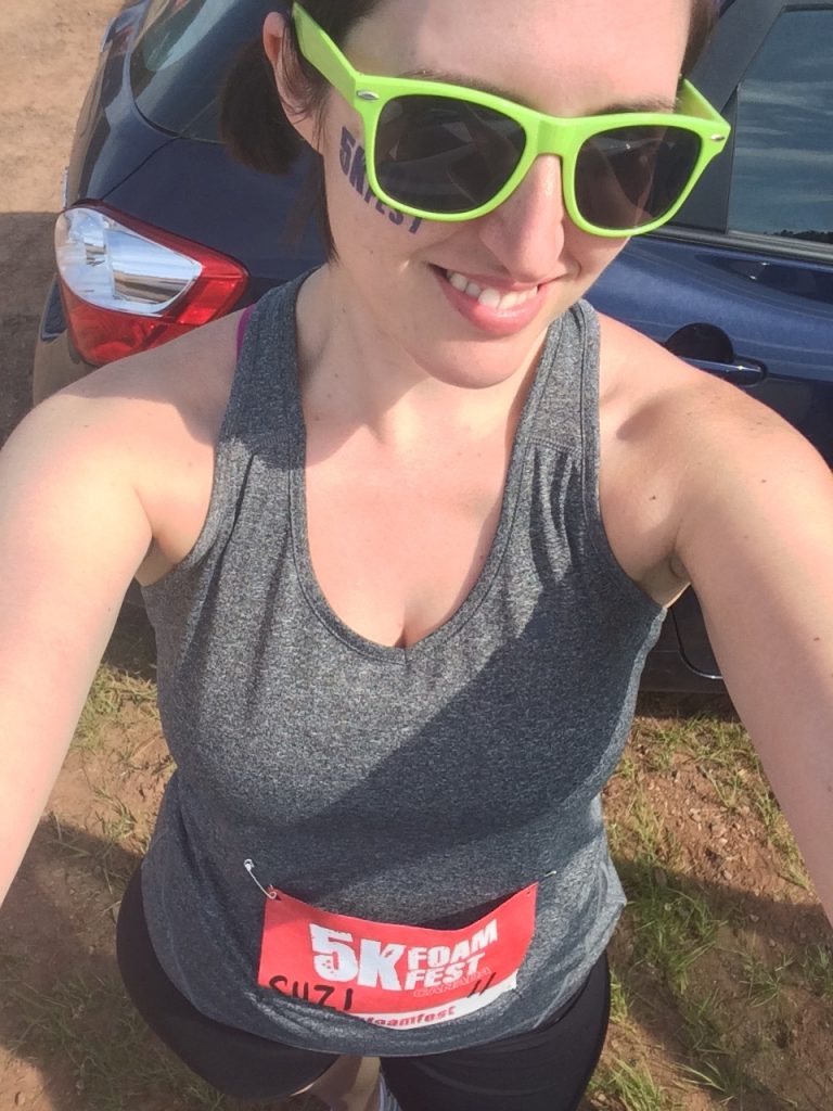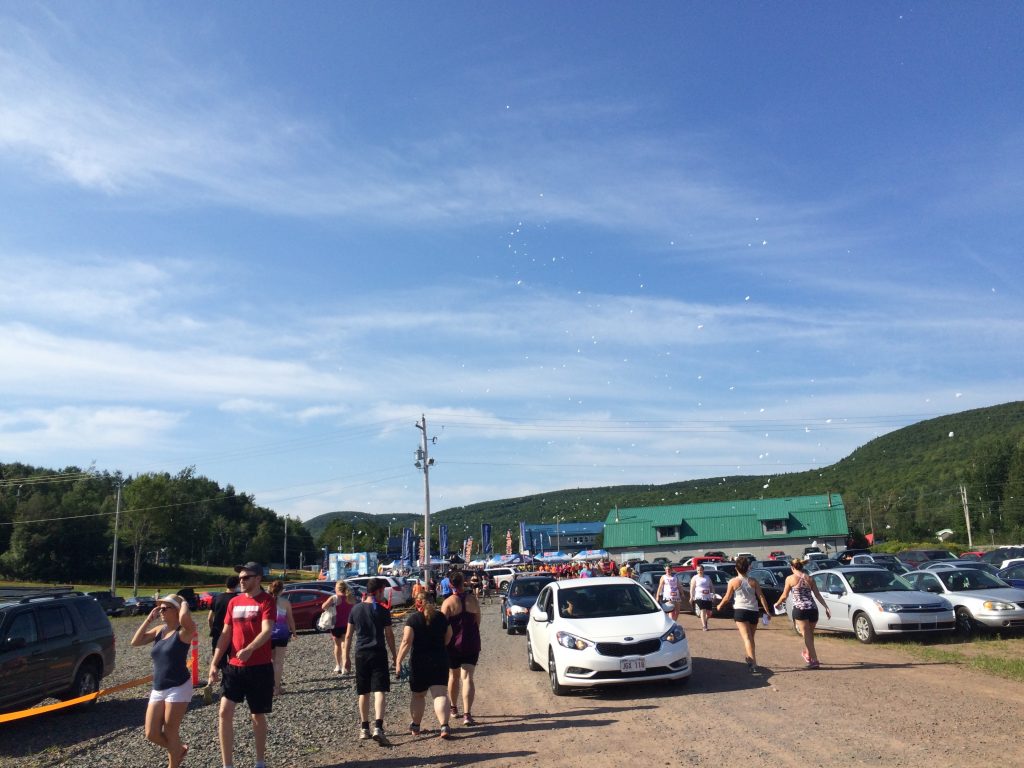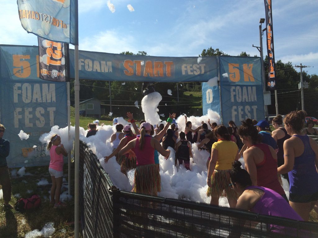 I’m finally getting around to writing about my time at 5K Foam Fest when it came to Nova Scotia on August 15th! You may remember me writing about it earlier in the summer, this was an event I had been both really looking forward to and dreading. I was dreading the long drive to and from the venue, and was a little worried it would end up being a rainy, rotten day.  It was held at Ski Wentworth, so a little over a two hour drive away from where I live. Fortunately I collected up a few of my friends and we went together which made it a lot more fun travelling than it would have been all by myself (and bonus – I didn’t have to drive!). And it turned out to be a beautiful (though hot) day so my second worry ended up being for nothing – gotta love it when that happens!