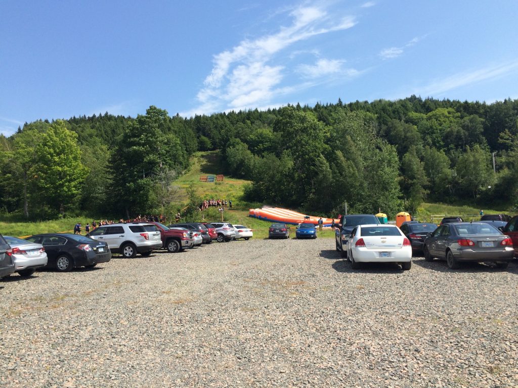 We had signed up for the 11 am wave so we didn’t have to leave quite so early, even so we were on the road at 7am, which gave us lots of time to get there, pick up our bibs and whatnot before our wave started. We also didn’t know what the parking situation would be like, and were hoping we wouldn’t have to take a shuttle to/from the race site – well we lucked out there too! We got in the main parking lot and got to watch people already on course taking the “Death Drop” which was only feet away from where we were parked.