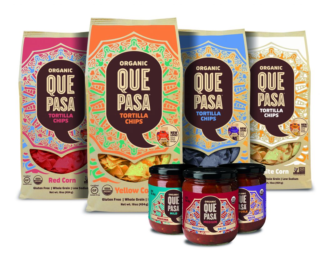 - Assortment of Que Pasa organic salsa, including medium Mexicana, Mild, and smoky Chipotle flavours