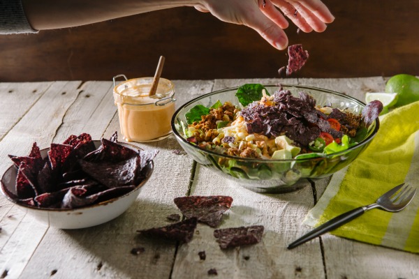 Meaty Meatless Taco Salad with Creamy Chipotle Lime Dressing