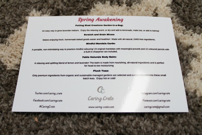 Also included with the box is a card listing all of the boxes contents telling you a bit more about each of the products, something I always appreciate, especially if there is an item you aren’t entirely familiar with an item.Give yourself a little extra TLC with Caring Crate