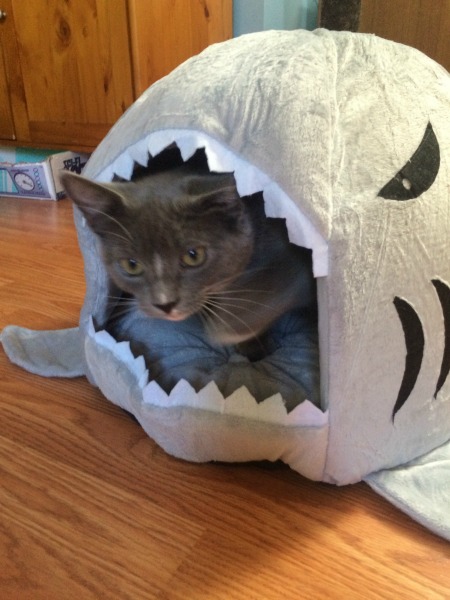 Well over a month ago I ordered the kittens this Shark Cat House from Pet Clever because it was well – amazing.
