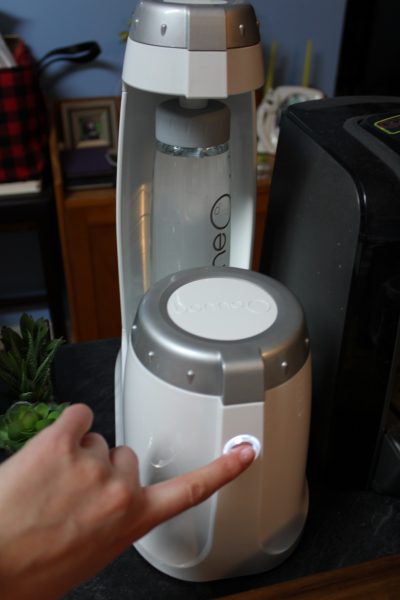 You press that button and let the Bonne O go to work! It takes 3-4 minutes for it to fully carbonate, but once you’ve pressed the button it takes care of the rest so you can go about your day unless you want to stand there and watch the magic like I do!