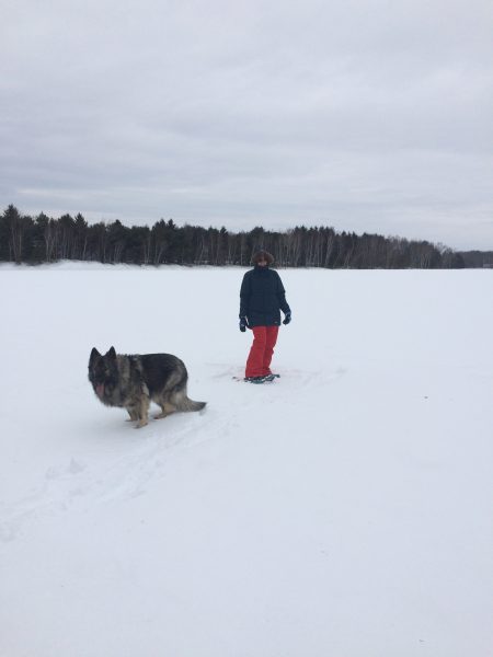 We were really fortunate that after a full week of snowstorms where we were given a winter reprieve with a full week of absolutely gorgeous weather. So last Sunday I gathered up my gear and headed to Catherine’s for an afternoon of snowshoeing and doggies.