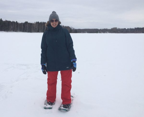The last item on my list of essentials was a pair of proper waterproof winter boots. These Merrell boots are super comfy, have great traction (When you’re not snowshoeing) and look pretty cute at the same time! In my snowshoes, they make a perfect pairing and keep my feet dry and warm.