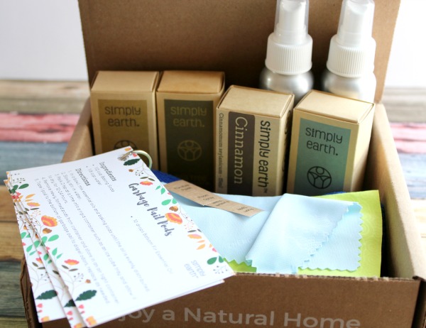 Each month, Simply Earth chooses a theme for their recipe box, and then provides subscribers with four bottles of essential oils, recipe cards and materials to make some of the products on the cards.