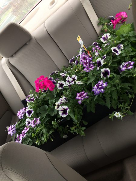 Miraculously, I made it all the way home (over an hour drive) without any of the window boxes getting knocked over or spilling in my car. Phew!