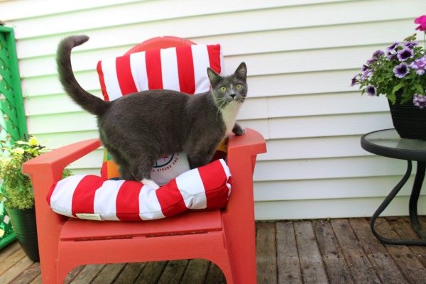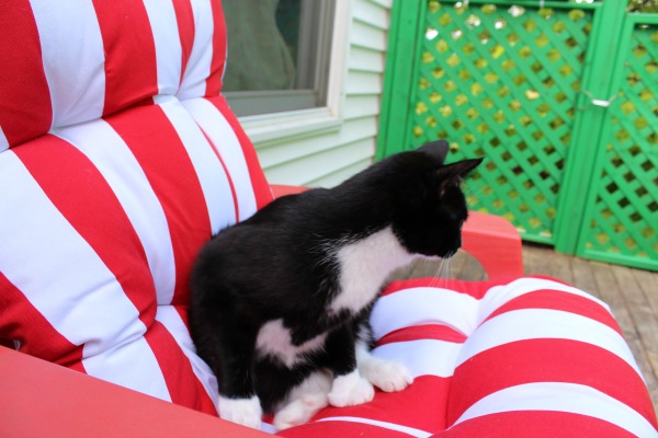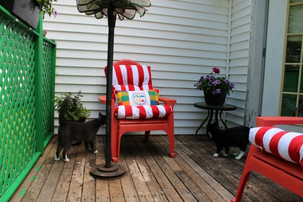 There is just something about having a cozy outdoor space to hang out in during the summer. Somewhere you can go when you have a few minutes to relax and enjoy a glass of iced tea and a few pages of a book. And in the Fevens household, a place where you can let the kittens go out and enjoy a little fresh air without worrying about them getting away.