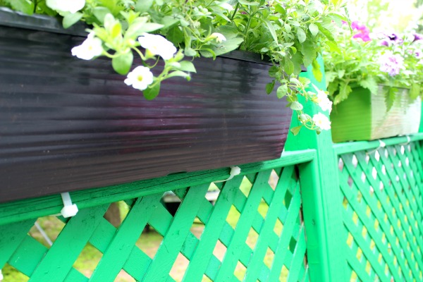 With the window boxes, I also got a bag of gigantic zip ties to use in order to affix the window boxes to the top of the railings. It was a bit tricky to get them threaded through the bottom of the window boxes (thankfully the holes were already there), but only took 5-10 minutes total to do. It is a two person job attaching them to the top of the railings. One person to hold the window box, the other to pull the zip ties snug. Ask me how I know? Yeah, I nearly dumped one of the window boxes out while trying to do it myself like a dummy.
