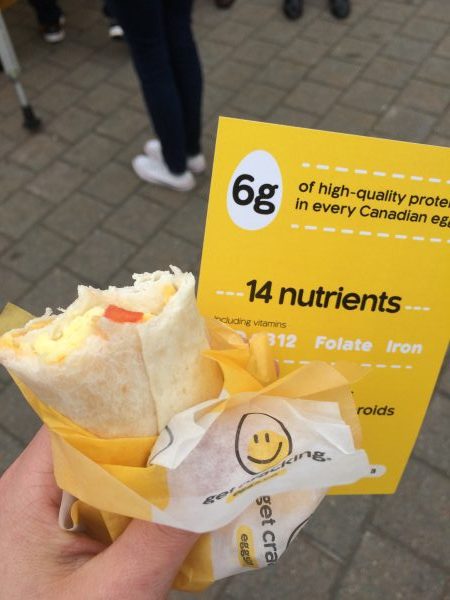 What was really fun about the event is they had a number of Nova Scotia Egg Farmers set up with their own tent, and each farm was serving breakfasts made with their own eggs!